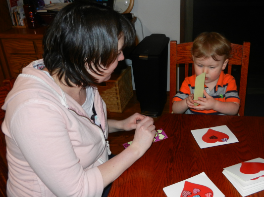 We made valentines for Kiddo’s class last week. I did some whirlwind shopping on Monday evening, grabbed a few things I already had on hand, and with Kiddo’s help, constructed a dozen valentines for his friends. I was worried that I was going to be That Mom who goes nuts with the DIY crafting. But when we picked up Kiddo and his haul after daycare the next evening, it turned out we weren’t alone in this endeavor.