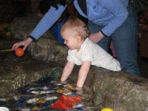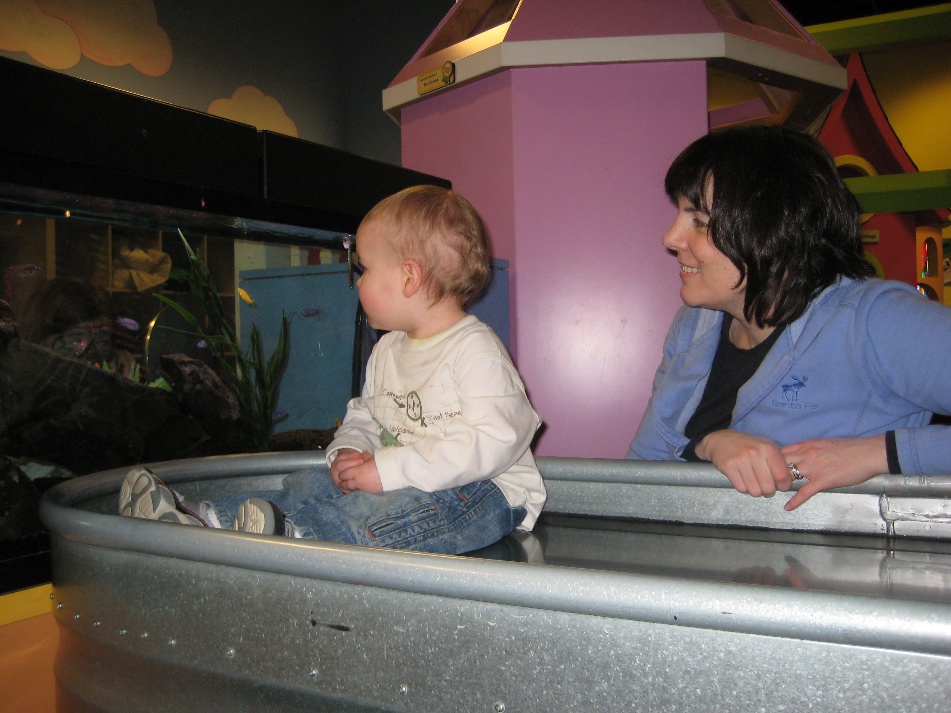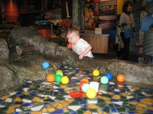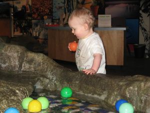 He carried that orange ball around with him for the rest of the time that we were at KidsQuest, and wailed when I had to take it away.  Sorry Kiddo!  He also soaked his shirt, and I’d forgotten to bring an extra one along so I had to run out and buy him one.  I bet the OshKosh B’Gosh store across the walkway gets a lot of business from museum visitors.
